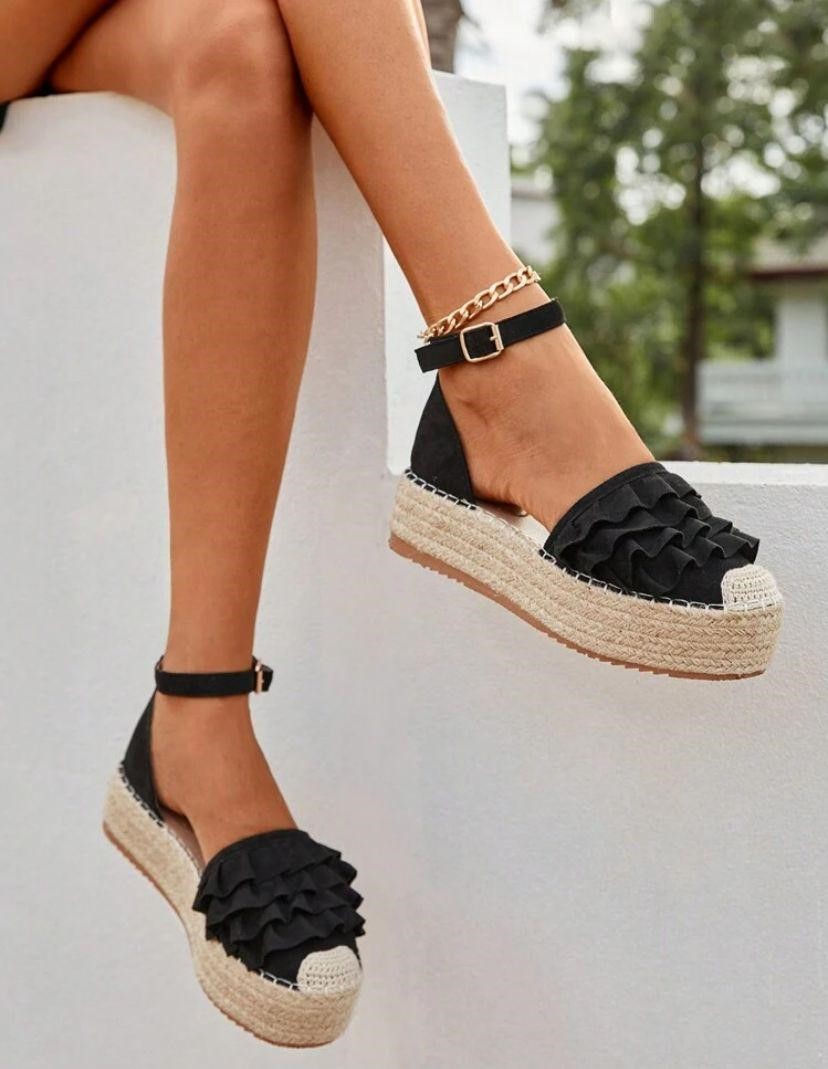 Sandalias café de plataforma baja amarre en el tobillo
